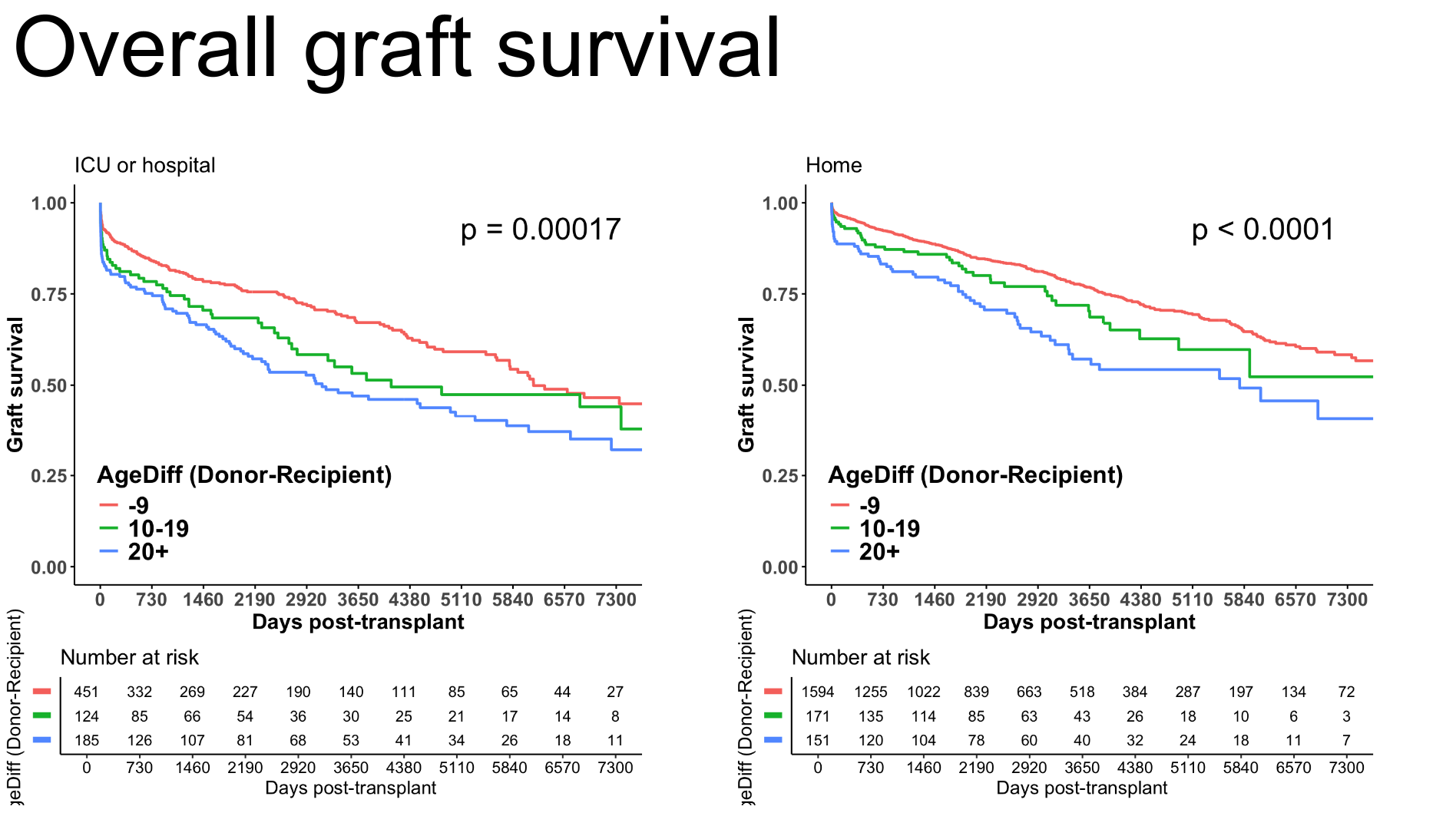 Methods: The United Network of Organ Sharing database was reviewed for pediatric deceased donor liver transplant patients ≤18 years of age undergoing liver transplantation from 2000-2024. Recipients were divided into 3 groups: 1) age difference of less than 9 years, 2) age difference of 10-19 years and 3) age difference of 20+ years. We additionally separated out whether they were admitted to ICU/hospital or came from home. Primary outcomes examined included overall graft survival, graft survival after 1 year and 5 years. Cofounders examined included type of graft, age of donor, cold ischemia time, pediatric diagnosis, PELD score, and time on wait list.